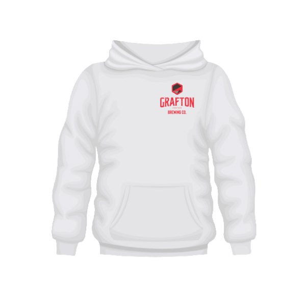 Grafton Heritage Brewing Co. pull over hoodie Made from 100% cotton. Black, White, Grey. Sizes S, M, L, XL, 2XL, 3XL. Relaxed fit.